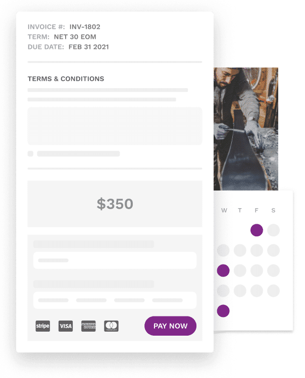 Offrez aux clients la possibilité d'effectuer des paiements en ligne directement à partir des soumissions ou activez les options de paiement automatique ou de facturation partielle pour plus de commodité.